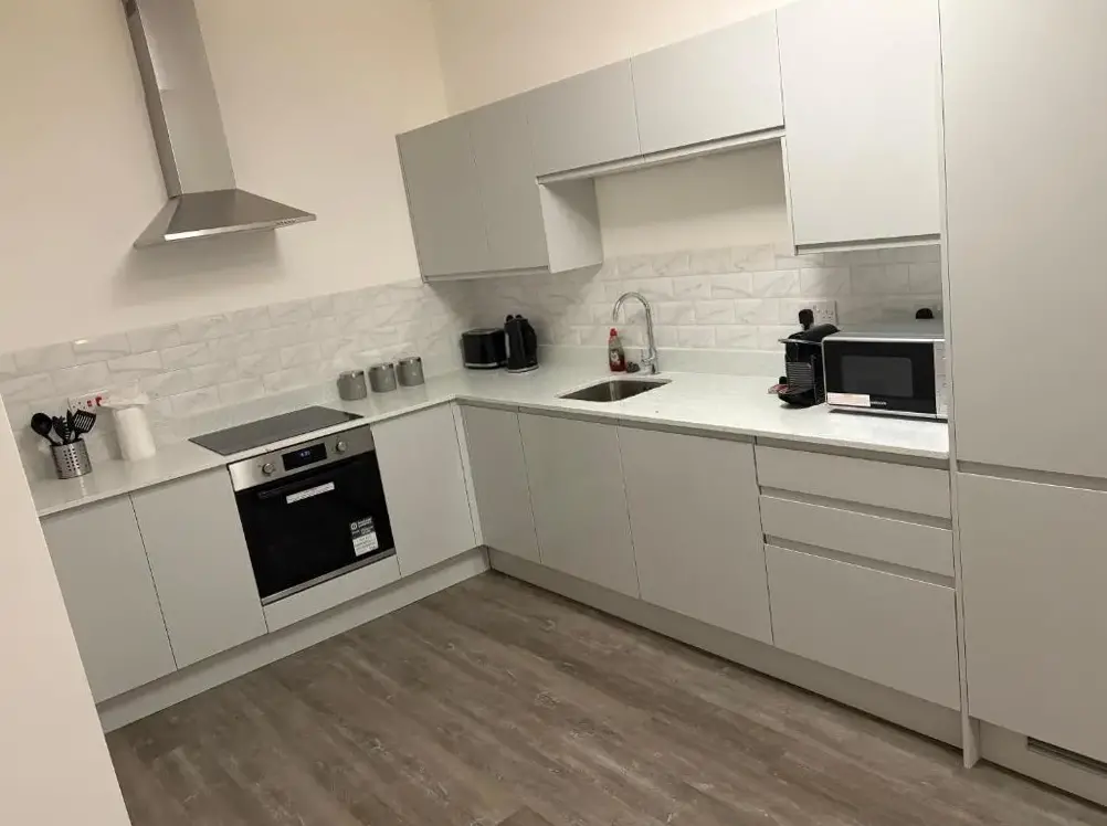 Spacious Accommodations: The Hideaway in Hampshire offers a spacious apartment with two bedrooms and two bathrooms. Guests enjoy free WiFi and complimentary on-site parking. Modern Amenities: The apartment features a fully equipped kitchen with a refrigerator, microwave, dishwasher, oven, and toaster. Additional amenities include a washing machine, streaming services, TV, and a dining table.