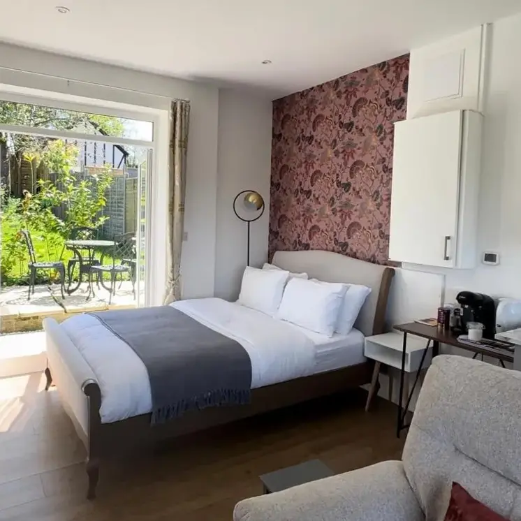 More information about Badgers SettComfortable Accommodations: Nautical South Self-contained Dog Friendly Annex in Fareham offers a one-bedroom apartment with a private bathroom. The ground-floor unit features a terrace and garden views. Modern Amenities: Guests enjoy free WiFi throughout, a fully equipped kitchenette, and a work desk.